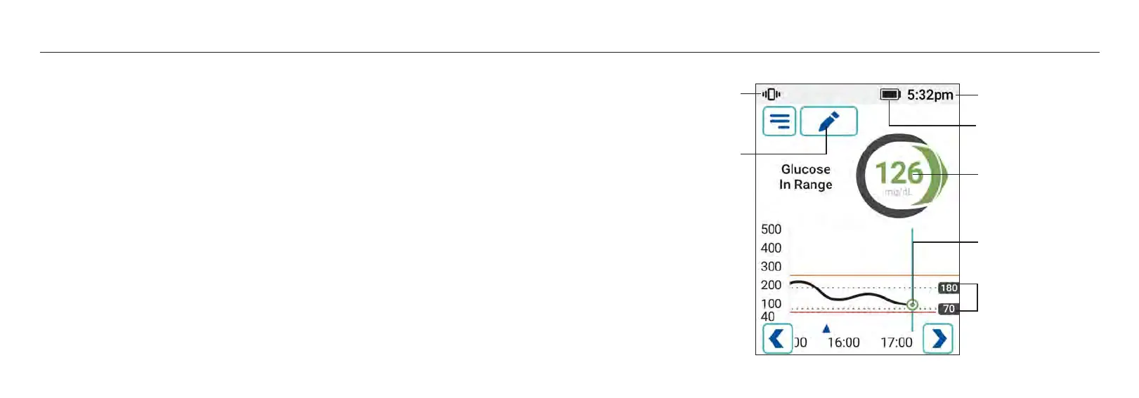 Your glucose information (e.g. reading, glucose graph, trend arrow indicating rates and direction of