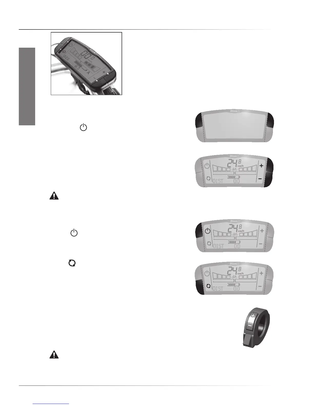 WARNING. Beware of unintended use of the throttle button when the system is switched On.