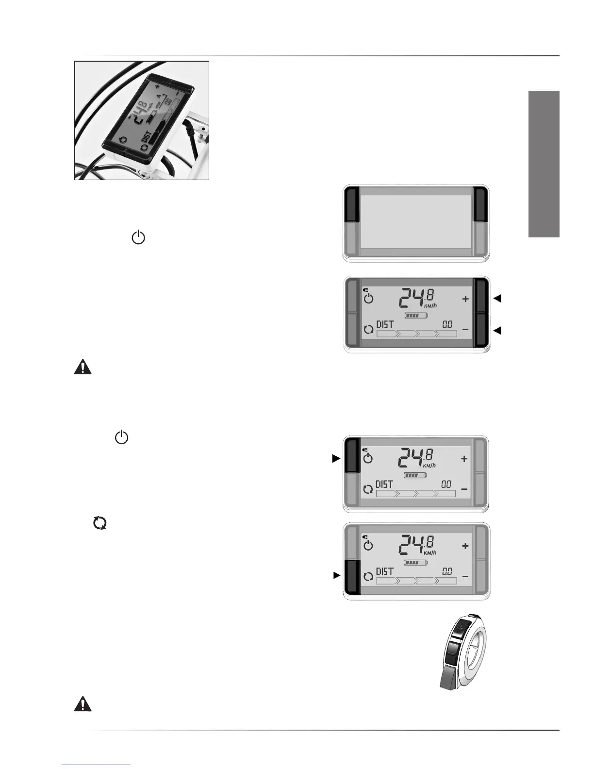 WARNING. It is strongly advised to ride away in a straight line when an assistance level is selected.