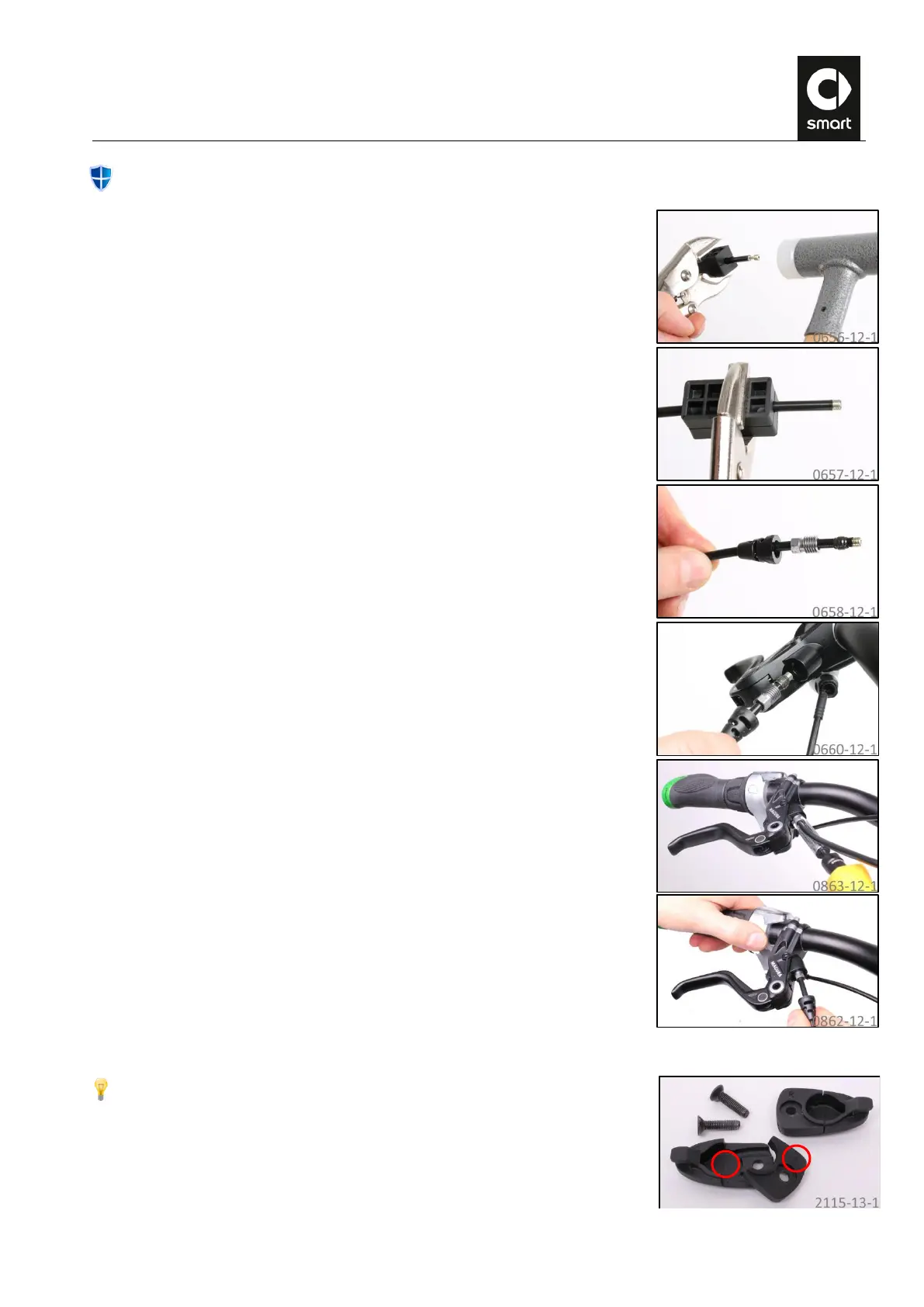 Proceed carefully when pushing the brake line through the frame so as not to damage the cable harness.