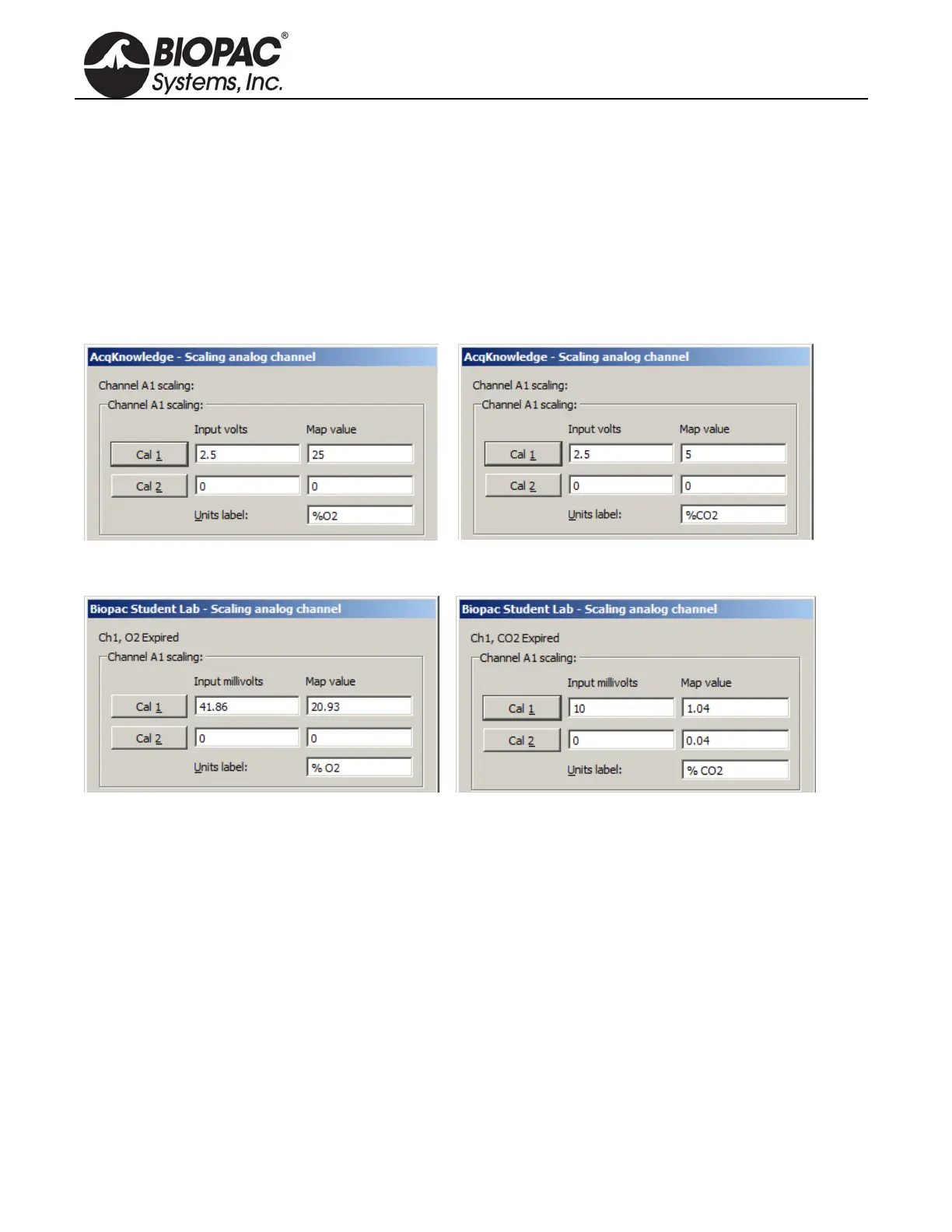 measurements, these values must be re-calibrated in the AcqKnowledge or BSL PRO software using the