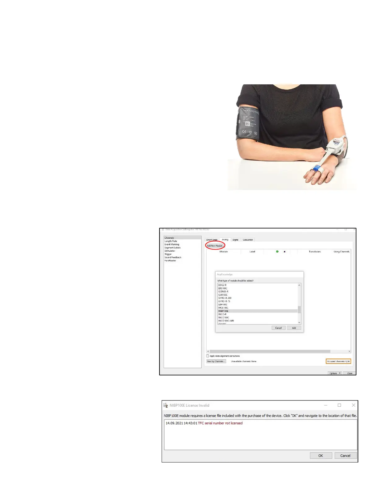 “NIBP100E” from the module list.