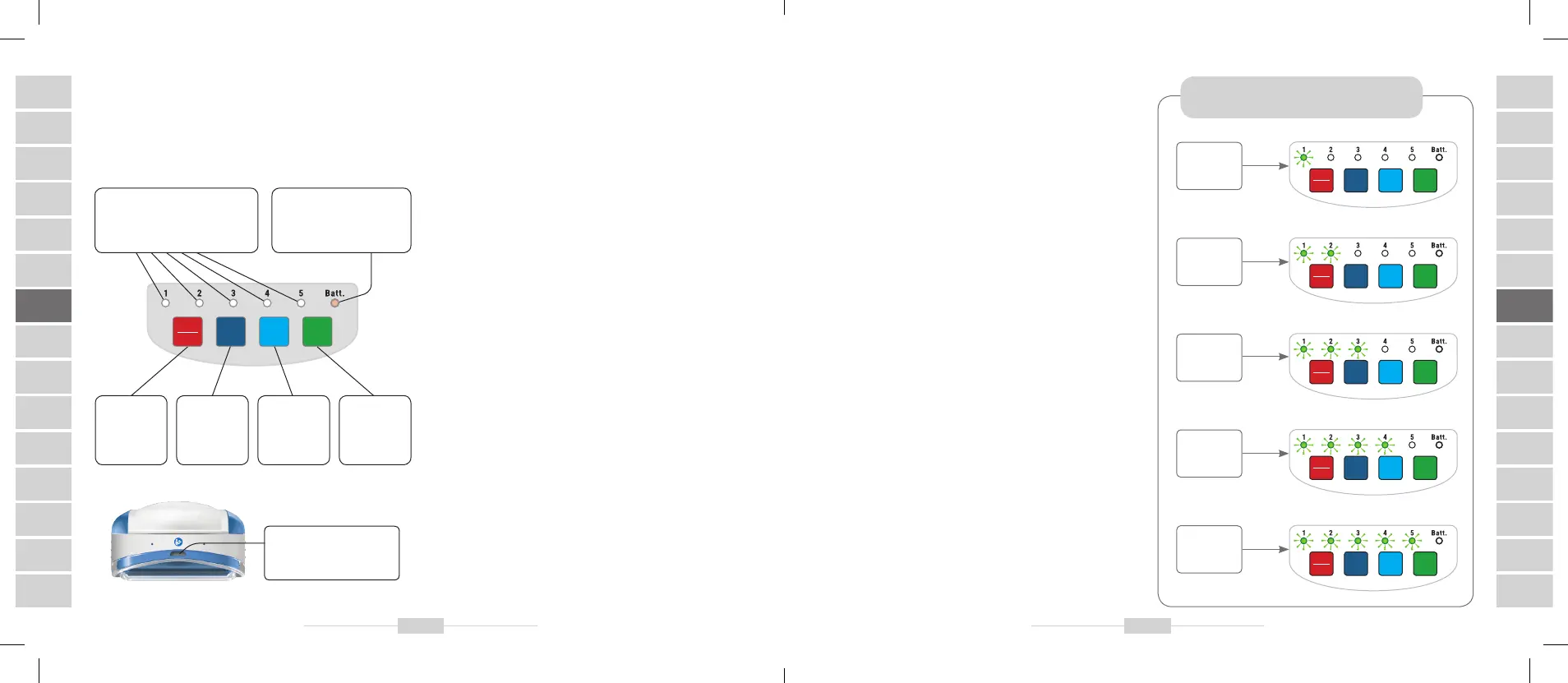 jelző diódák 1-5-ig és a Batt. dióda egymás után villannak fel.