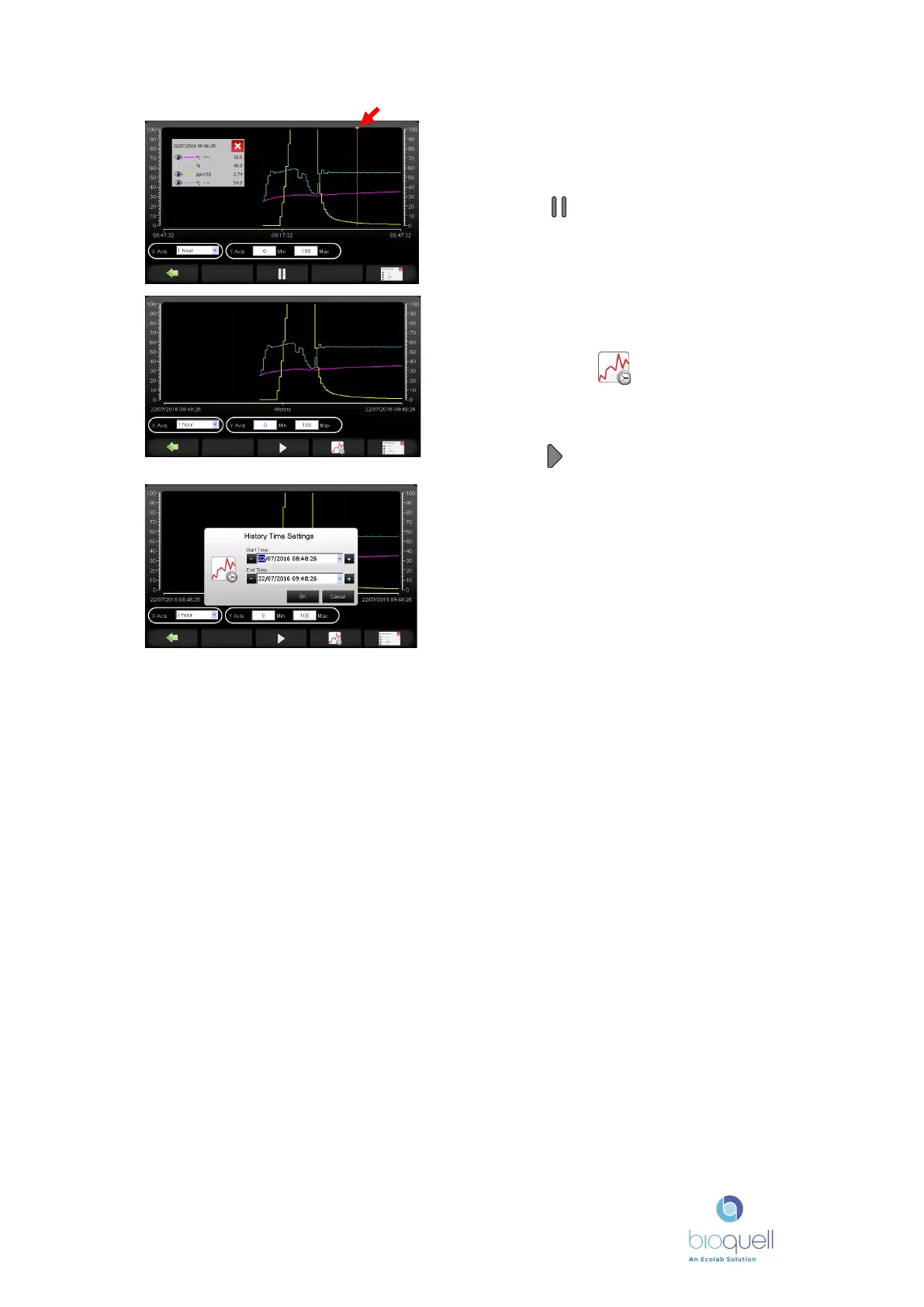 Press the button to move to a history/