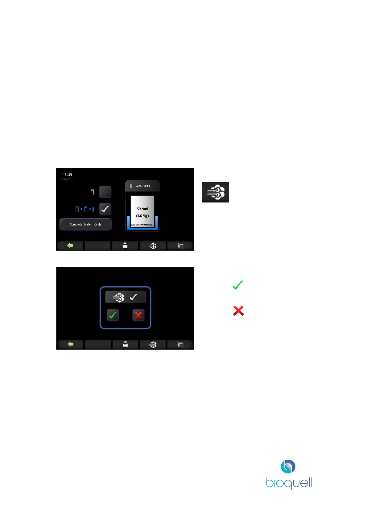 pressurising and green during actual pressure decay test; blue for conditioning