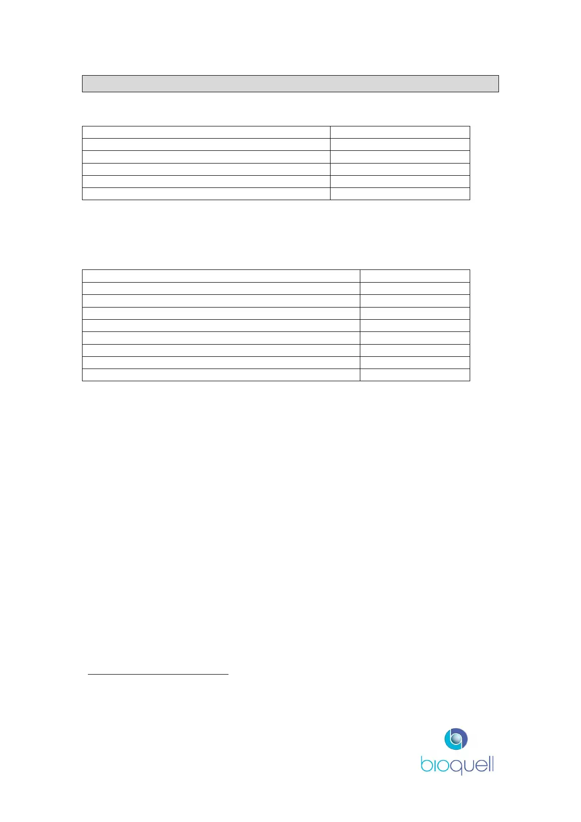 Where X denotes the country of purchase. Please contact your local Bioquell office or agent.