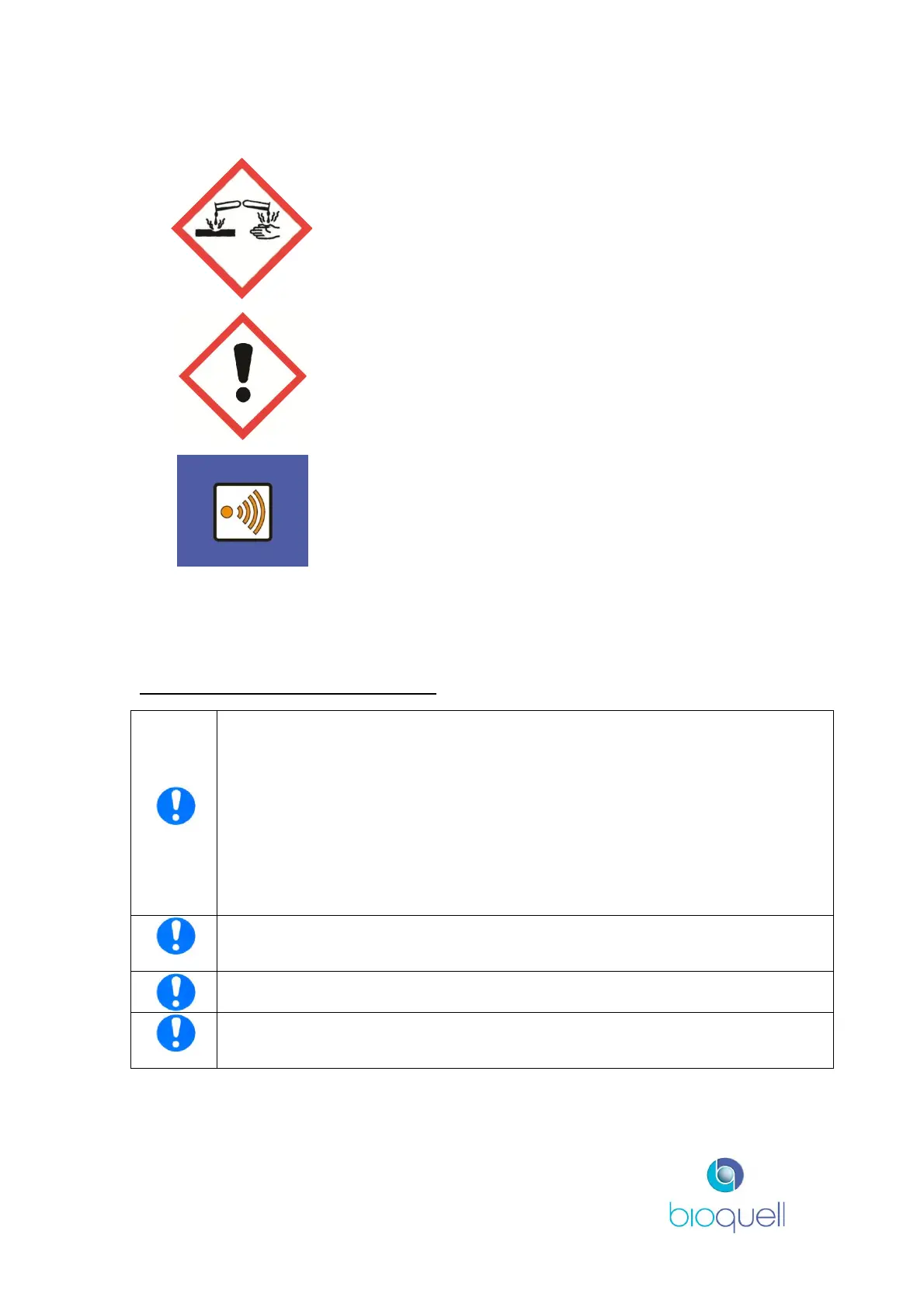 Note: Further information relating to safety for the Hydrogen Peroxide is