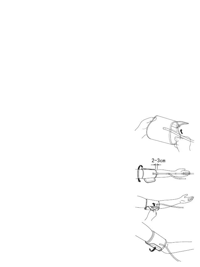 edge of the cuff is about 1” (2-3 cm) above the elbow joint.