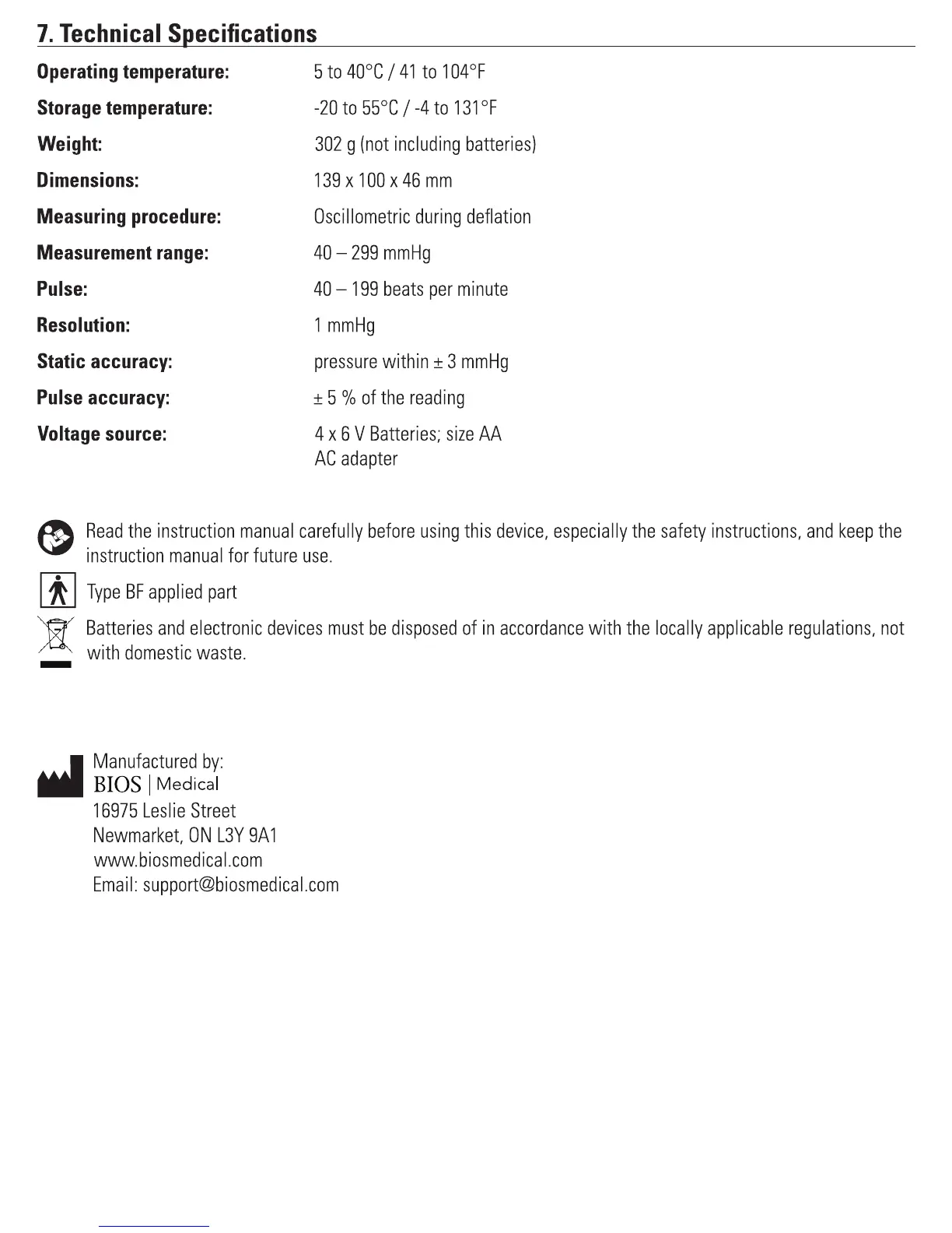 BIOS Diagnostics BD230 - Technical Specifications