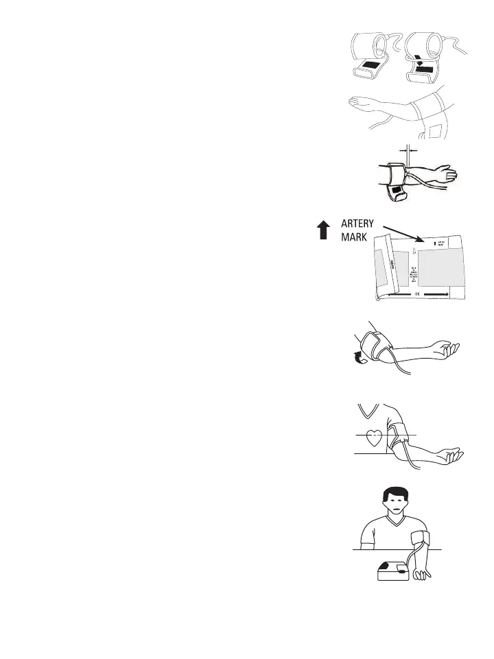 c) Lay the cuff on the arm as illustrated. Make certain that the