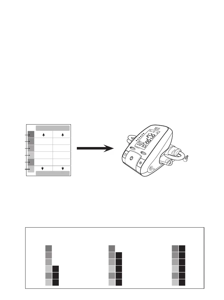 The bars on the left-hand edge of the display show you the range within which the indicated blood pressure