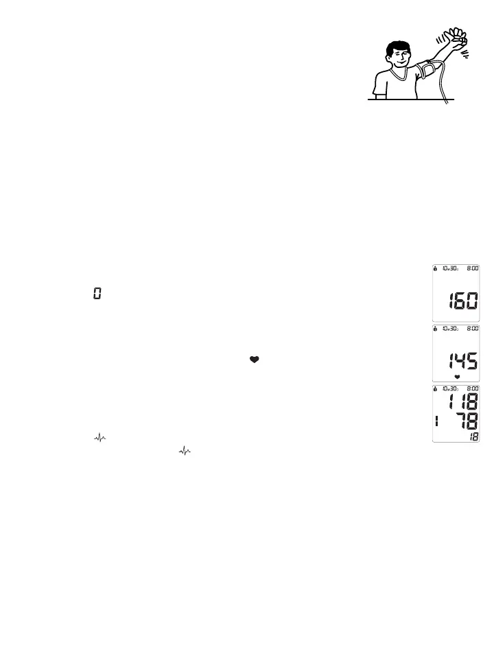 beeps and after “ ” will flash for 2 seconds. The pump then begins to inflate the cuff. The