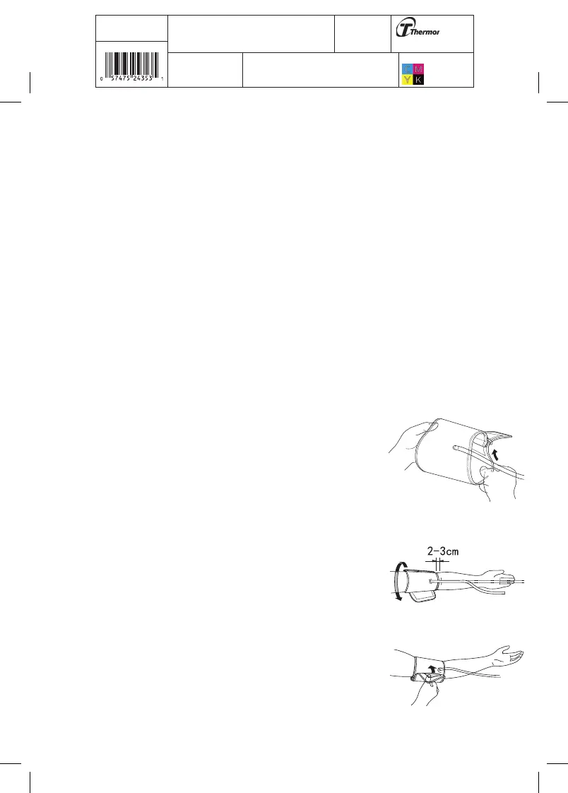 b) Place the cuff around your bare arm. Make sure the