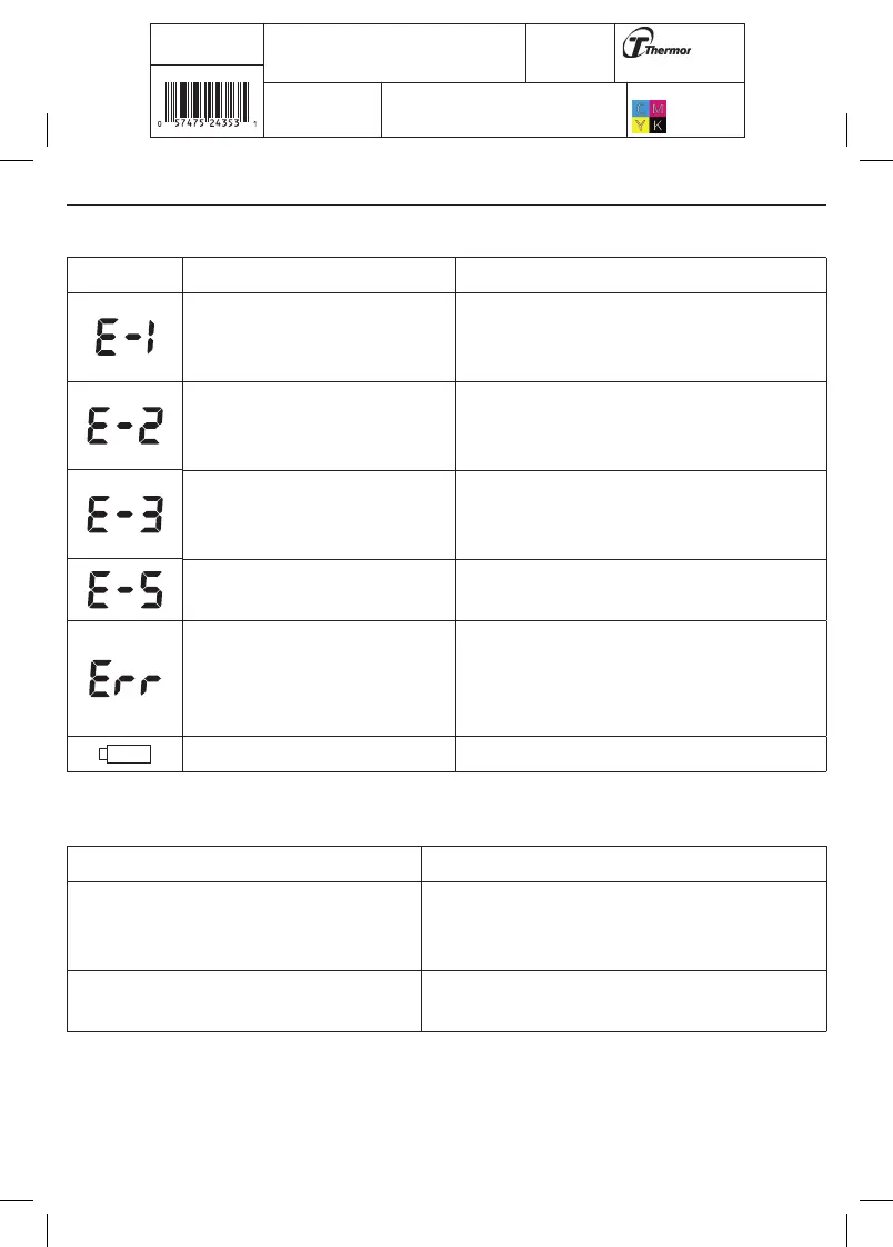 If an error occurs during a measurement the LCD displays the corresponding error code.