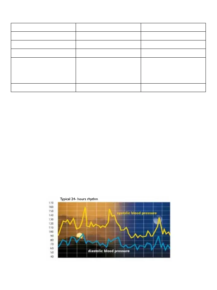 to 60 mmHg) throughout the day. Blood pressure is normally lowest at night, but increases during waking hours