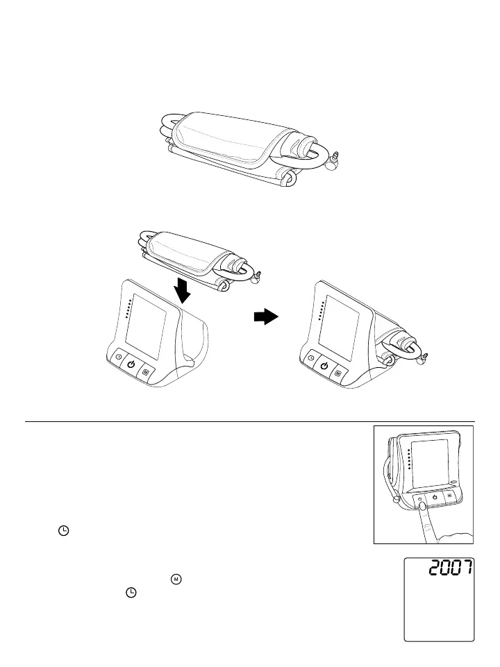 2. Insérez et poussez le brassard enroulé dans le compartiment à l’arrière du tensiomètre 3AL1-3E pour le