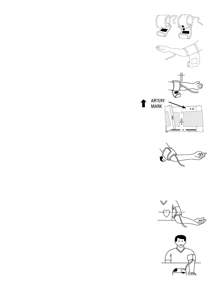 c) Lay the cuff on the arm as illustrated. Make certain that the