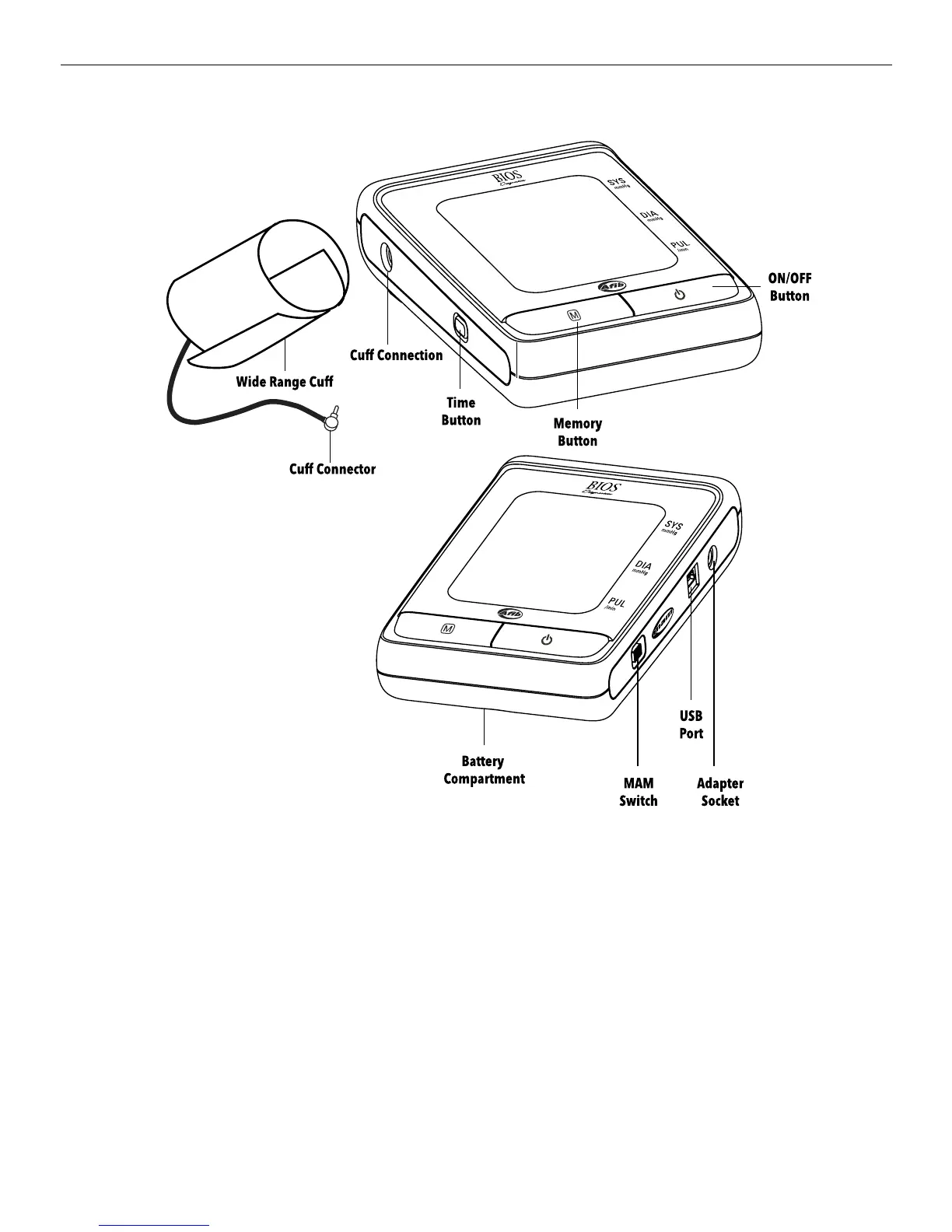 a) This section describes the various components of the Blood Pressure Monitor.