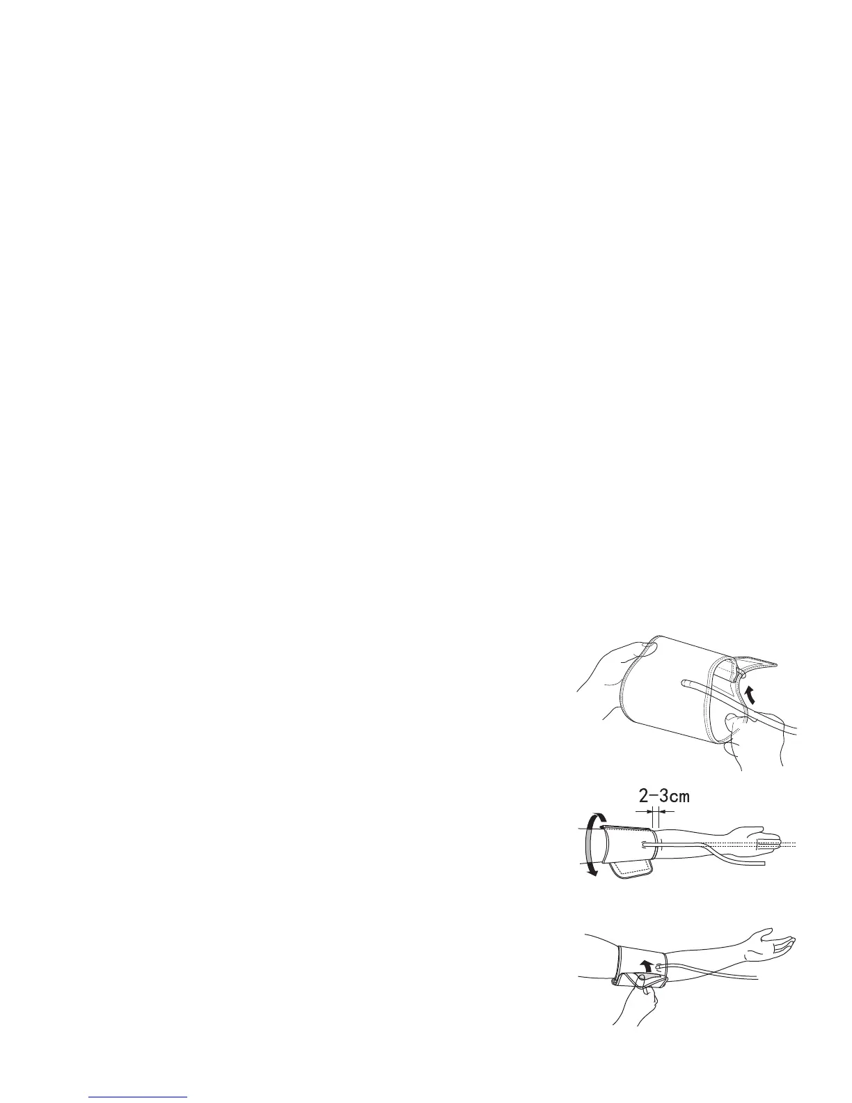 cuff is about 1” (2-3 cm) above the elbow joint. Adjust the cuff so that