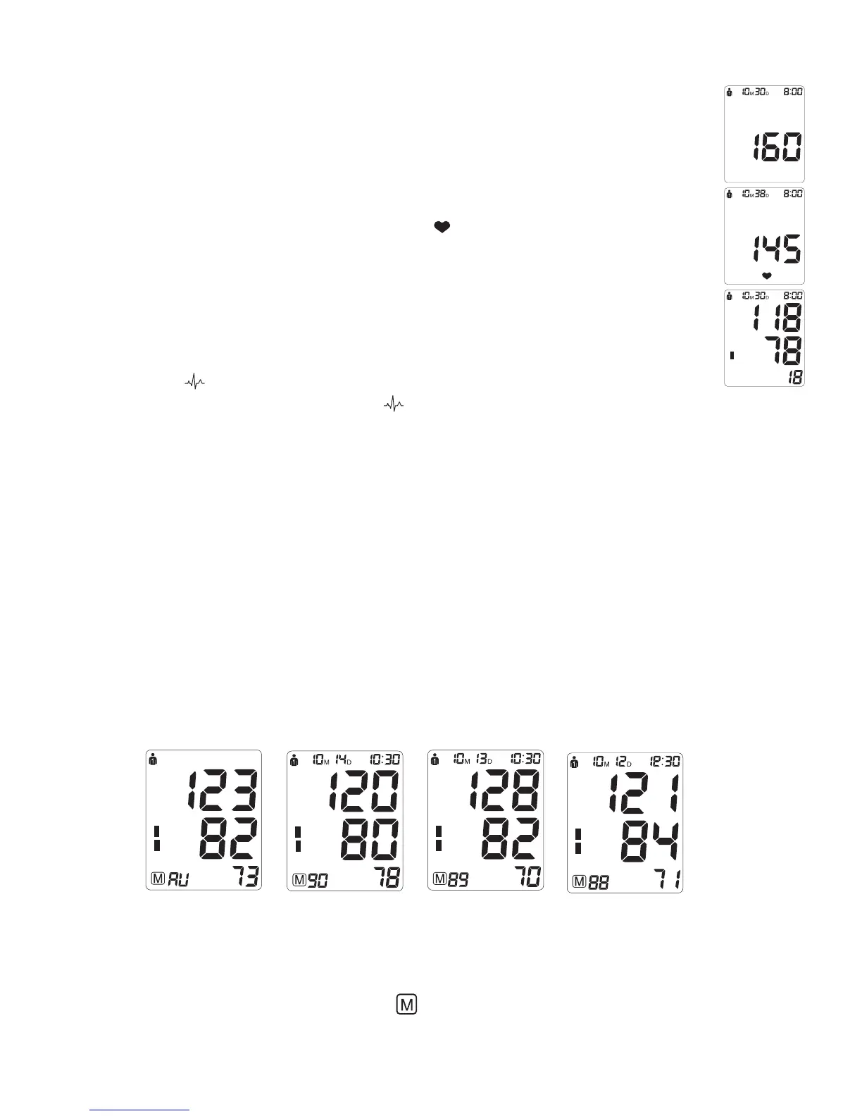 NOTE: The symbol “ ” will be displayed along with the reading if irregular heartbeat has been