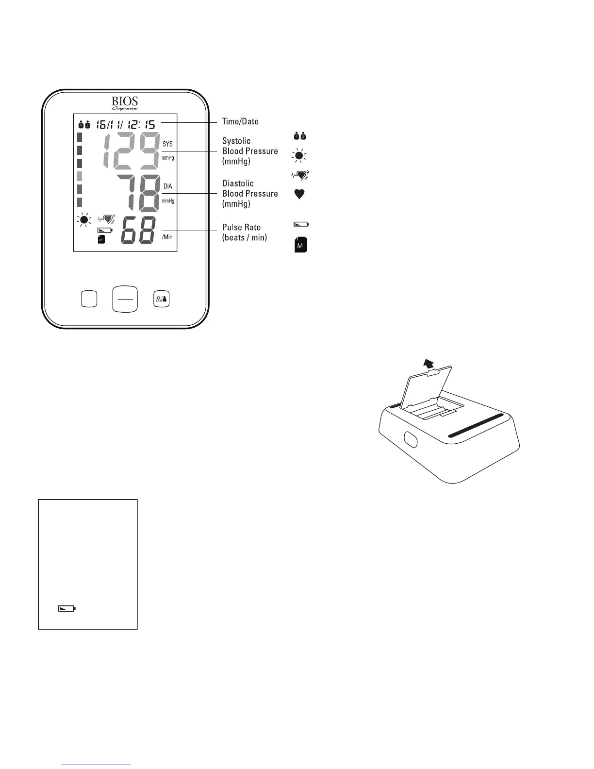 • Ifthebloodpressuremonitorisleftunusedforlongperiods,pleaseremovethebatteries