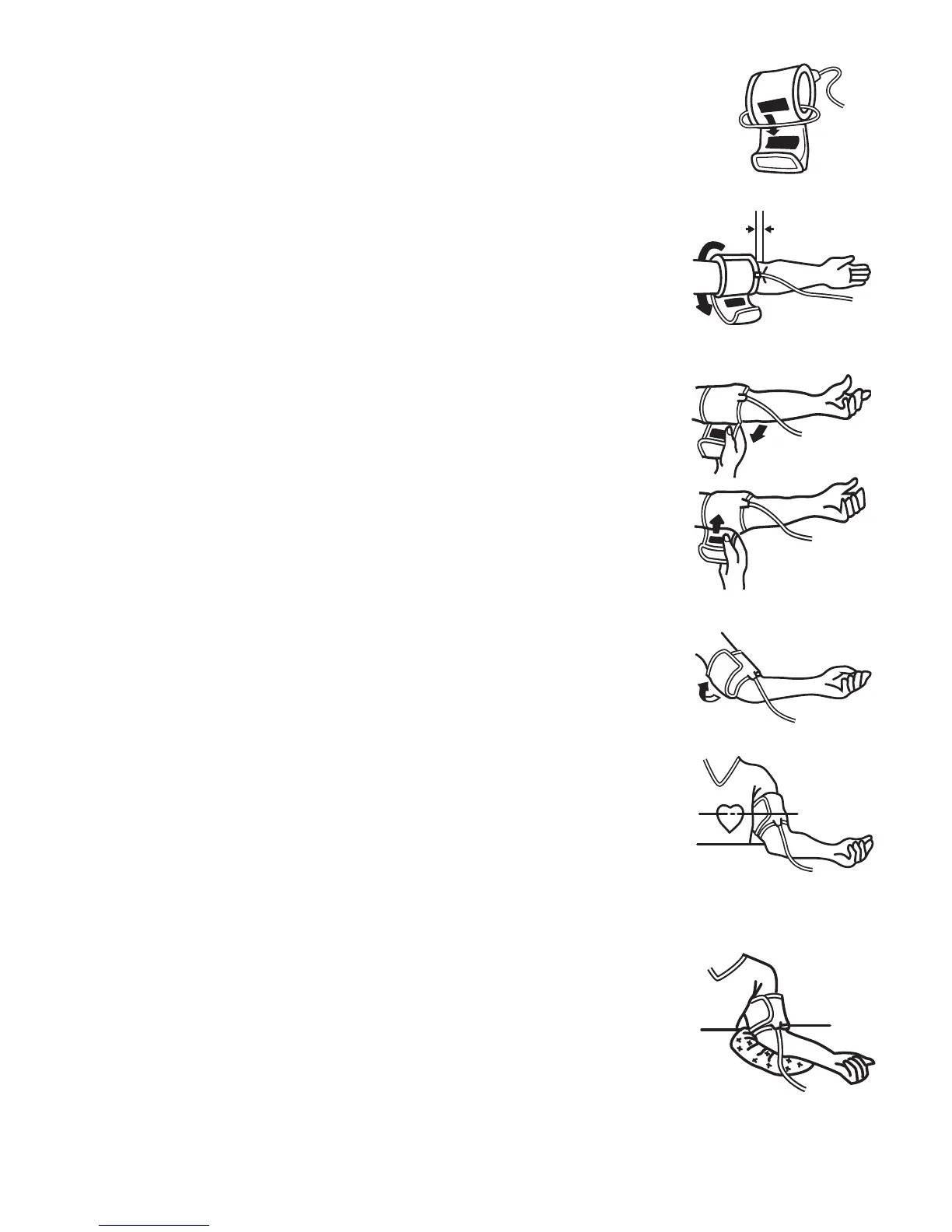the cuff is about 1” above the elbow joint. Adjust the cuff so that
