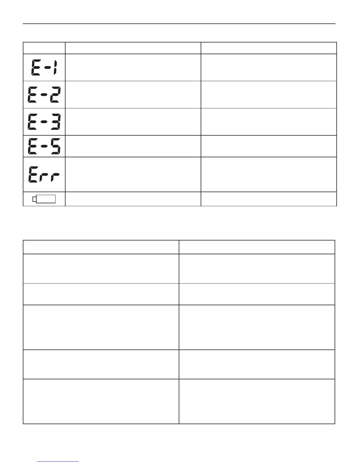 If an error occurs during a measurement the LCD displays the corresponding error code.