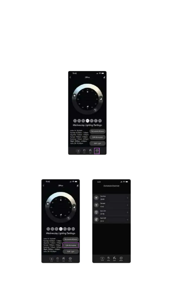 adjust the timing of the sunrise, sunset, night, auto-on and auto-o.