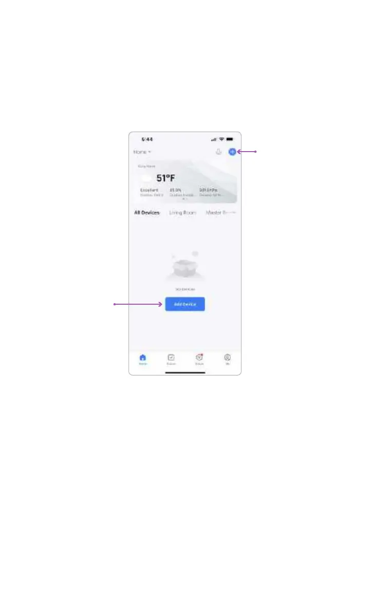 Tap Add Device or the plus icon (+) in the top right corner on the Home page to