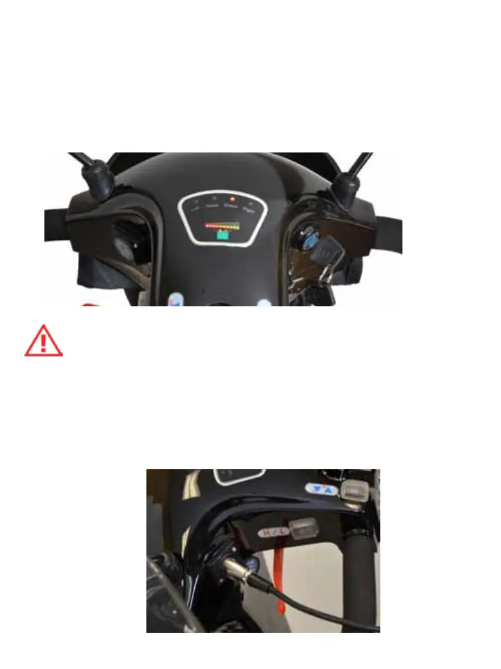 receptacle, located on the side of the tiller console, charges the