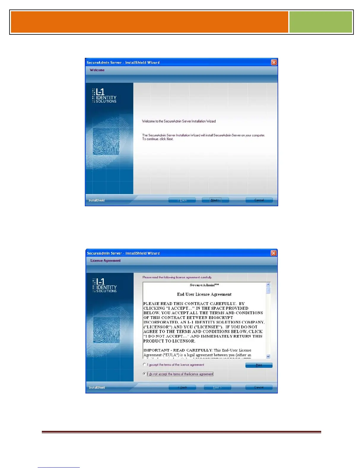 The L-1 Identity Solutions License Agreement is displayed. Select the appropriate radio