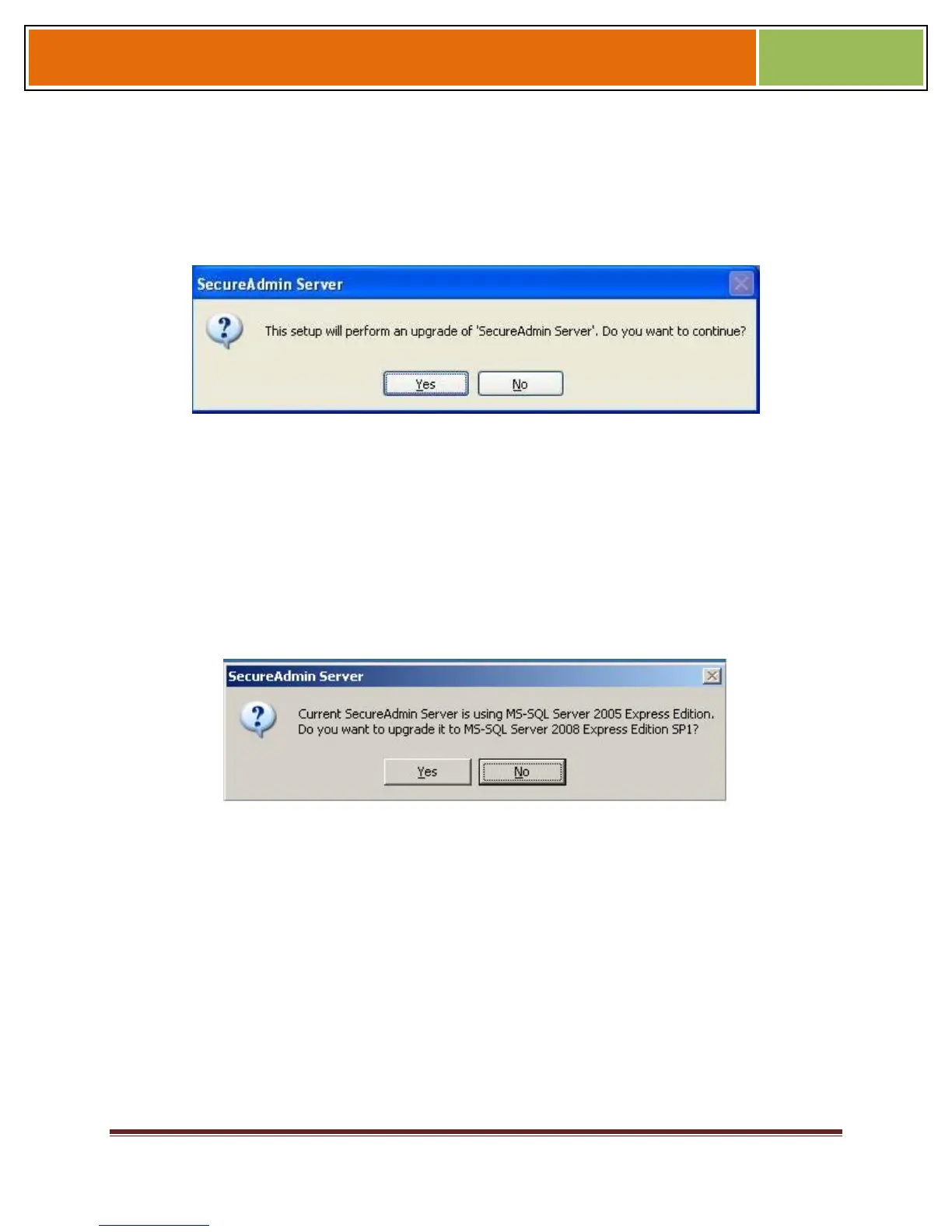 upgrade SecureAdmin server. Click Yes to continue with upgrade install.