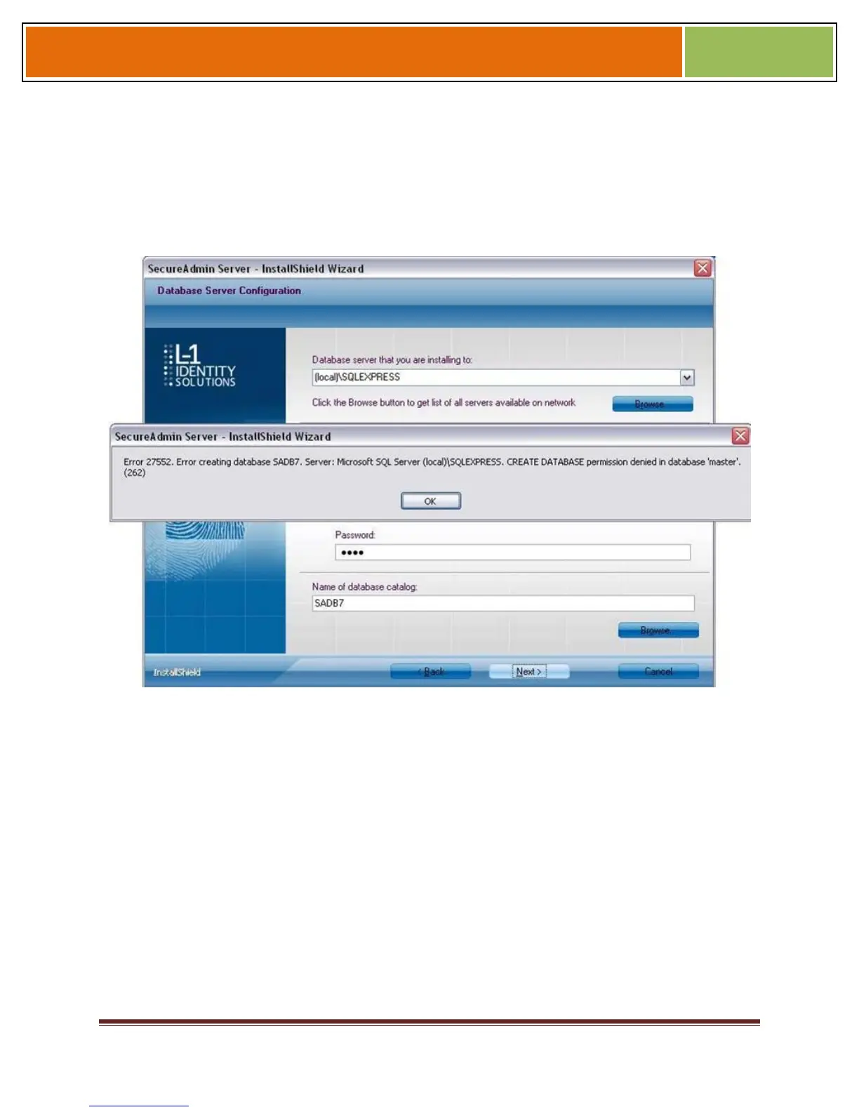 This error can occur during SecureAdmin Server installation process. If it occurs, it