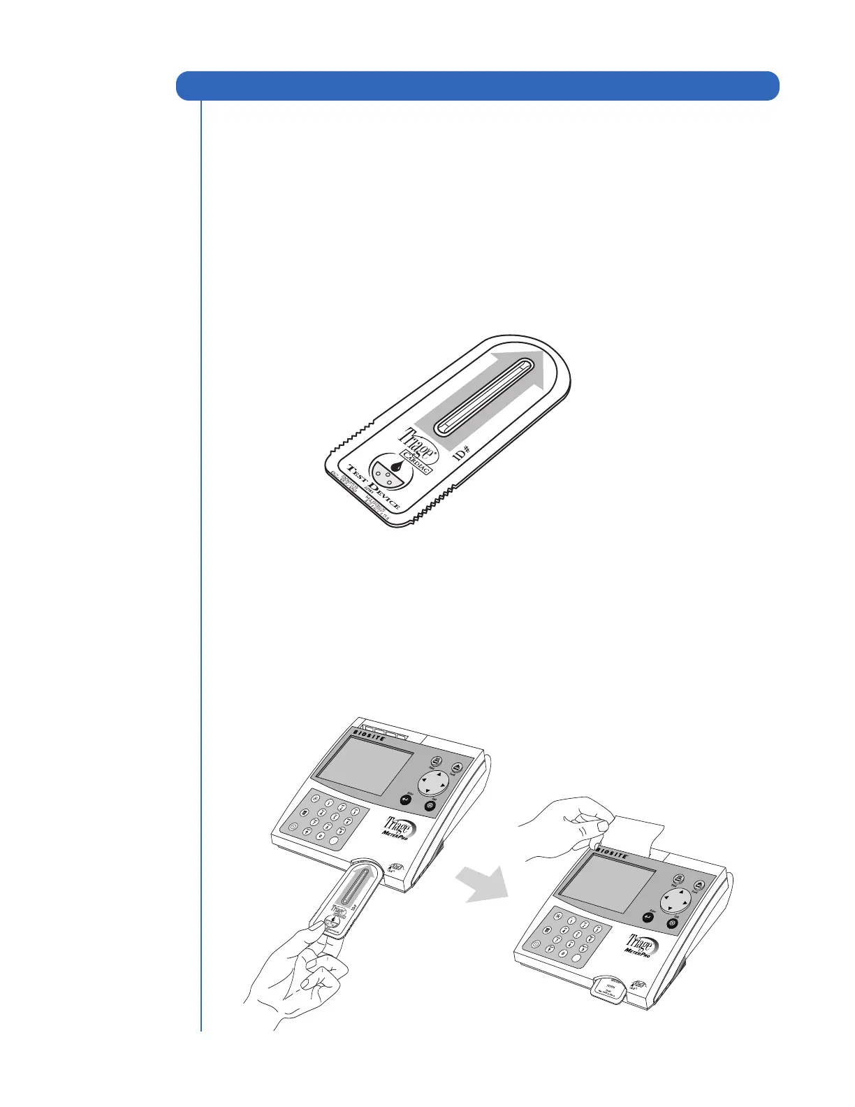 test device is inserted in the Triage MeterPro. The meter measures how much of the