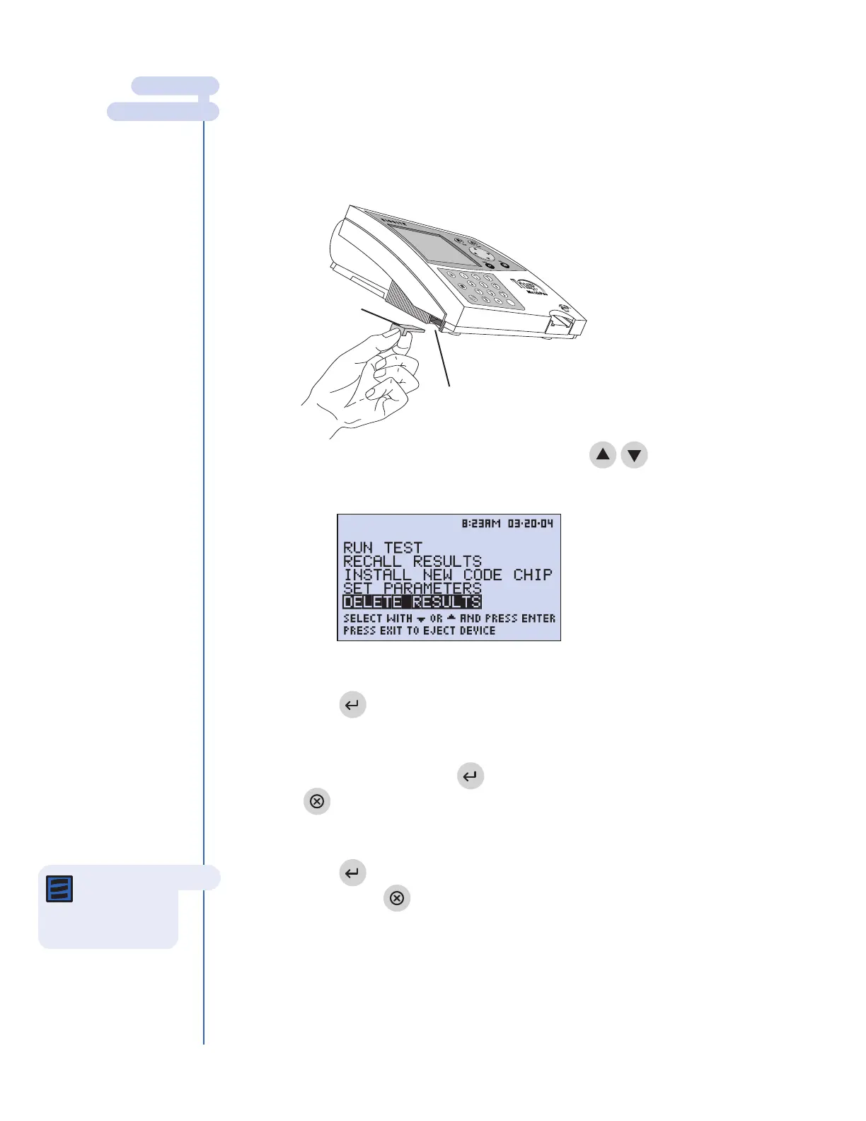 4. A warning message on the screen states: DELETE PATIENT RESULT.