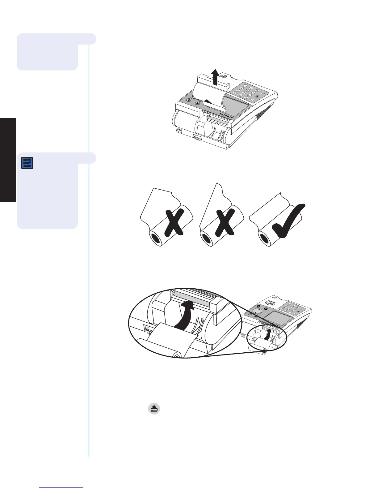 c. Position the paper such that the paper will feed from under the roll (as opposed to