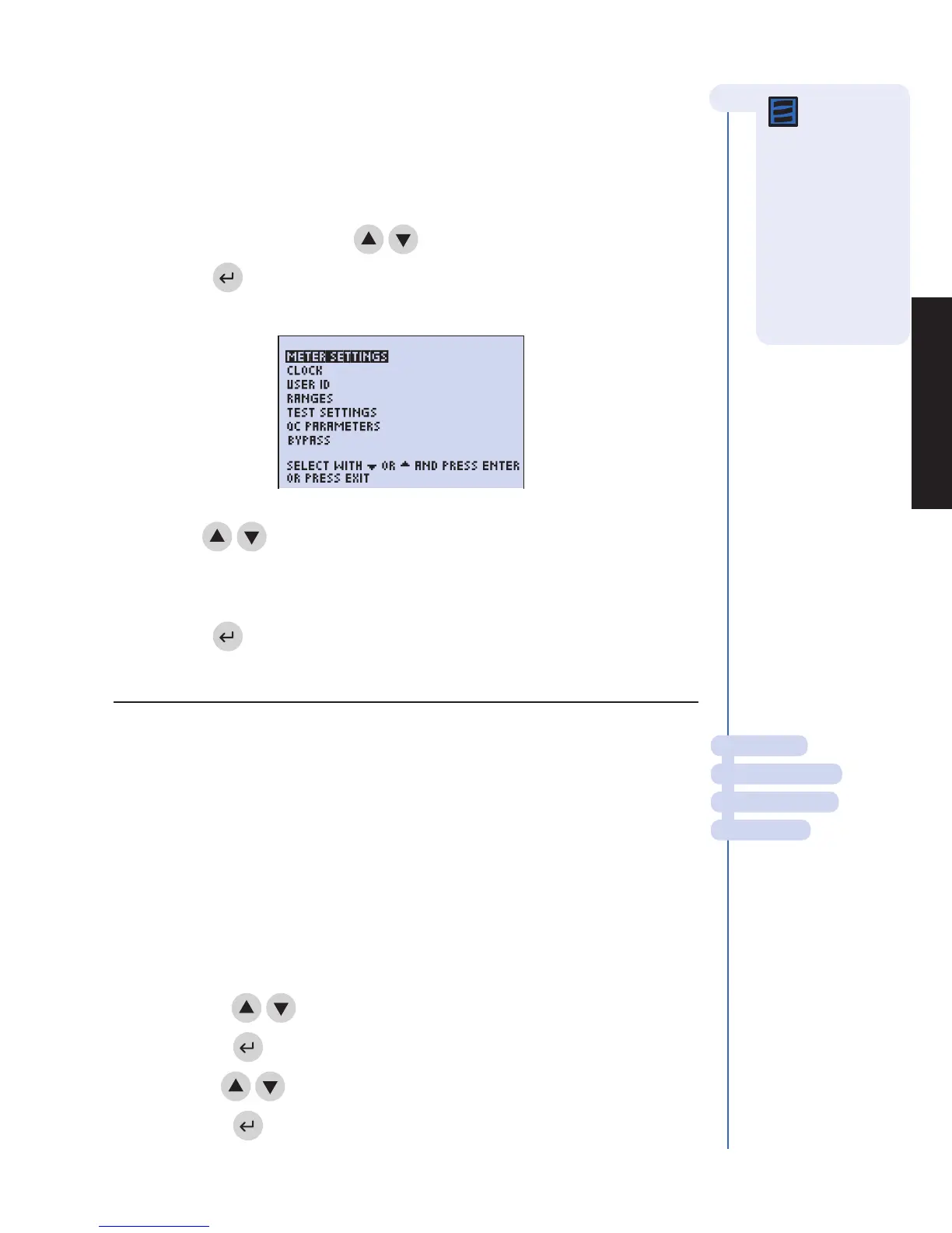 meter SettIngS, clock, uSer Id, rangeS, teSt SettIngS, Qc parameterS,