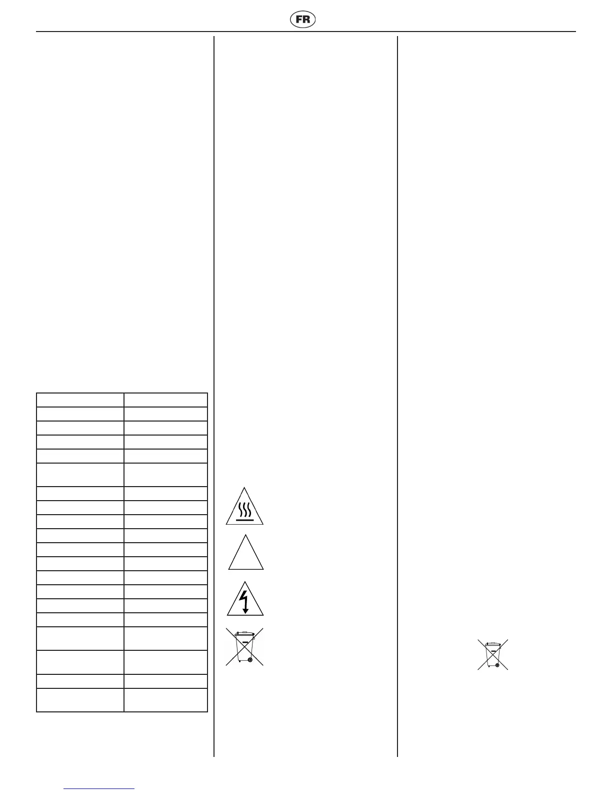 Avertissement: risque de choc