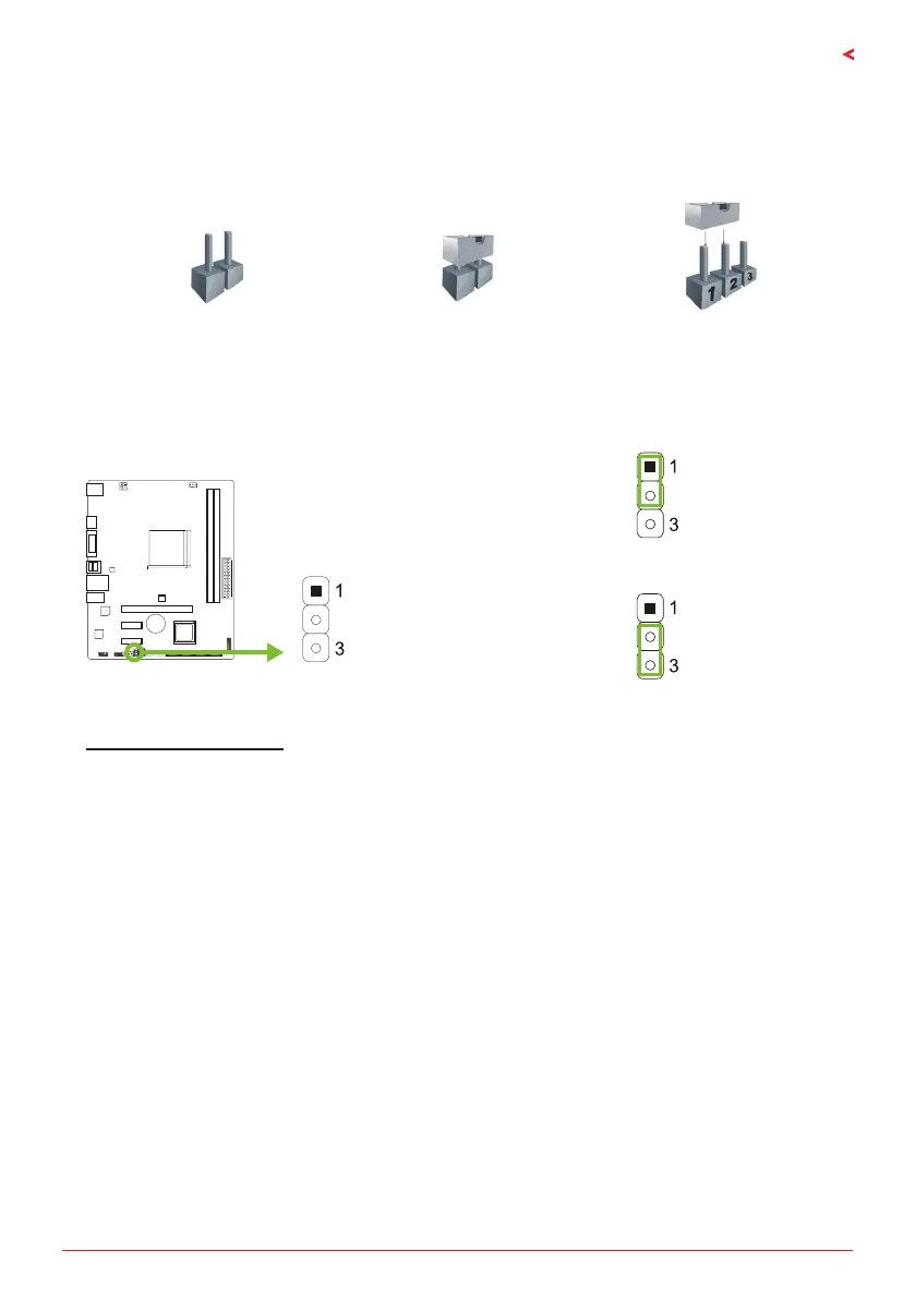 The illustraon shows how to set up jumpers. When the jumper cap is placed on pins, the