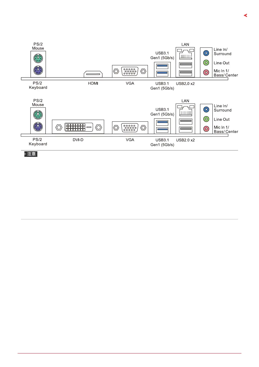 HDMI端口仅A320MH PRO 支持 ; DVI-D端口仅A320MD PRO 支持。