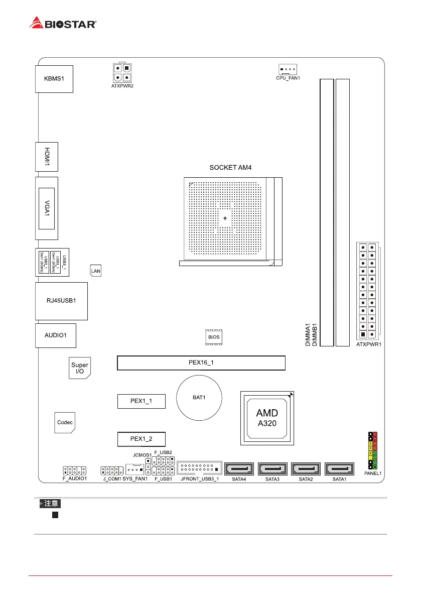 Biostar A320MH PRO - 主板布局图