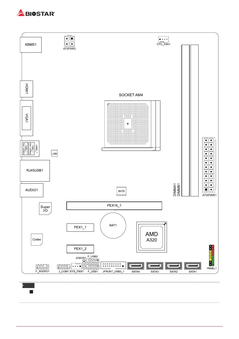 Biostar A320MH PRO - 1.5 Motherboard Layout
