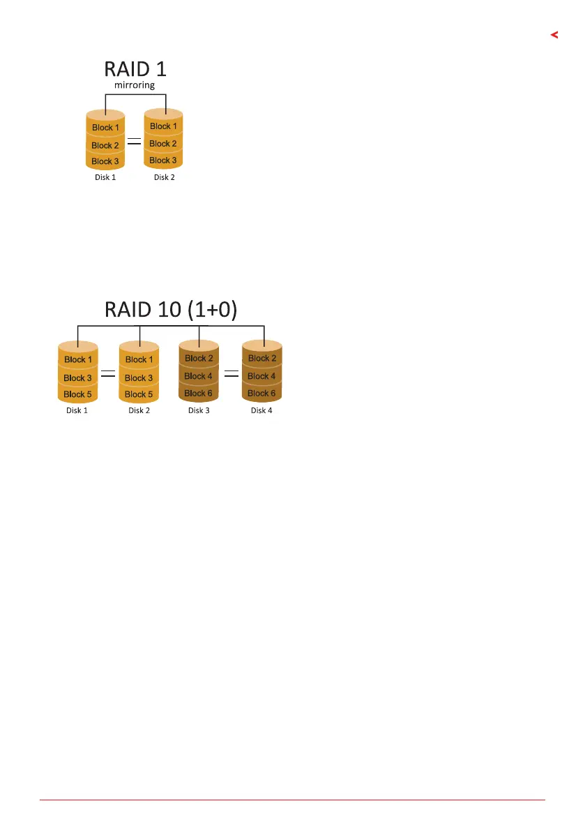 • 使用: RAID 1是理想的小型数据库储备器或应用在有容错能力和小容量方面。