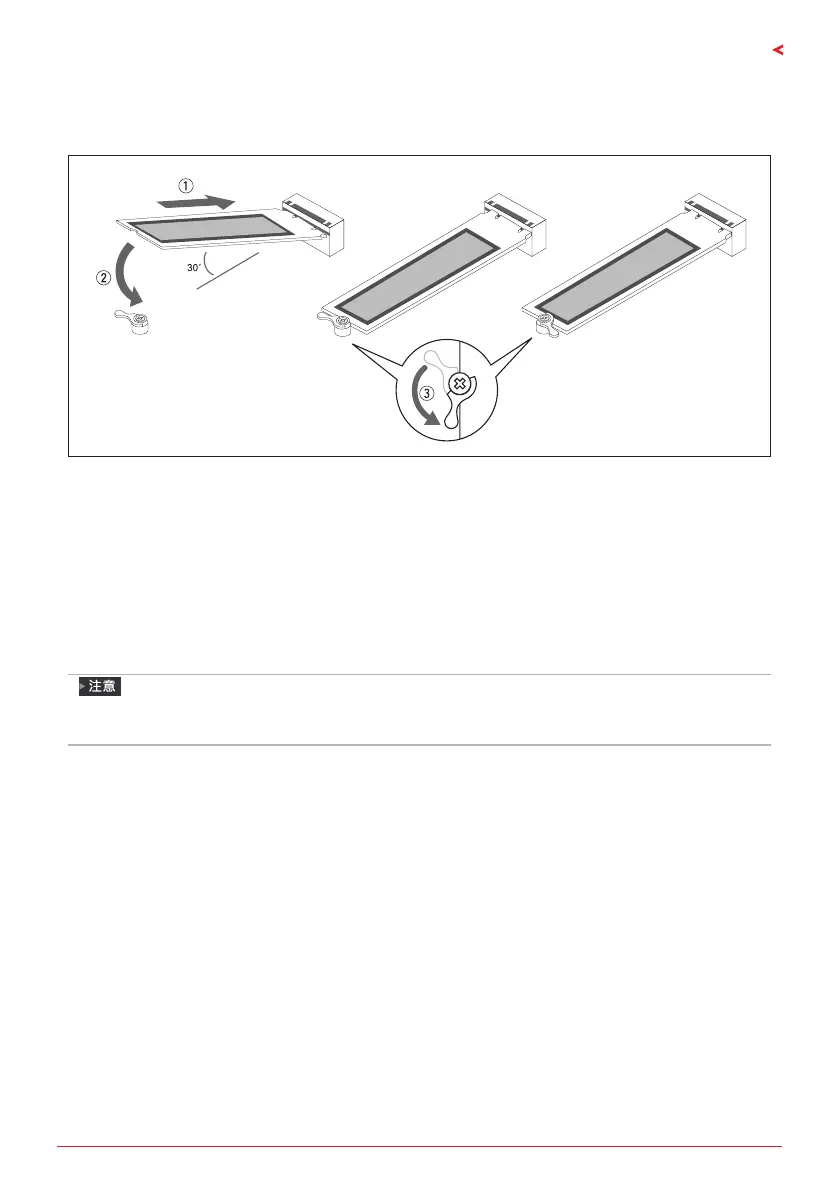 1. 請將 M.2 SSD 以 30 度角插入 M.2 插槽。