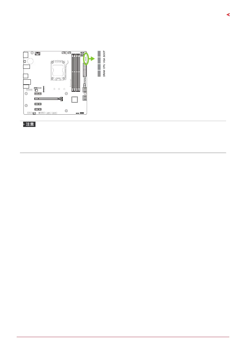 當電腦準備就緒時LED 指示燈將顯示錯誤發生的位置並持續亮著直到問題解決