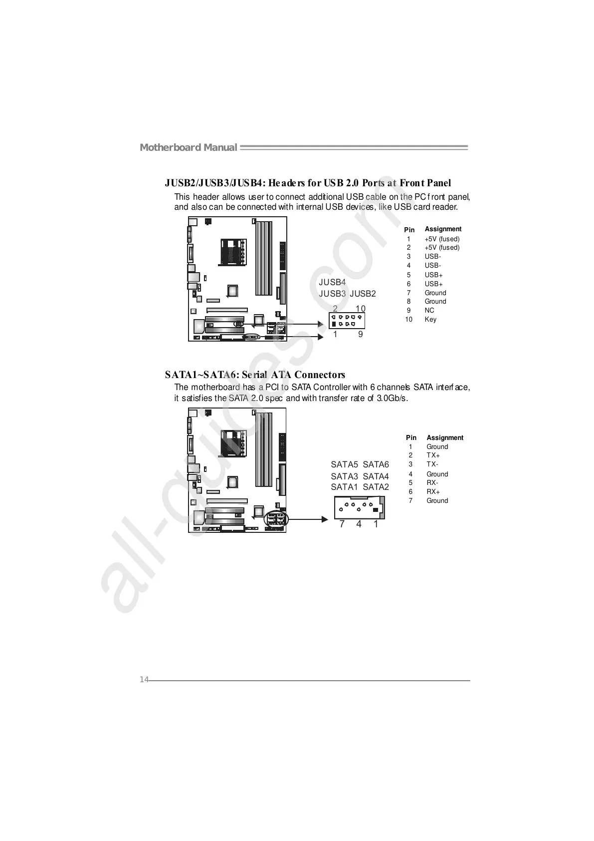 JUSB2/JUSB3/JUSB4: Headers for USB 2.0 Ports at Front Panel