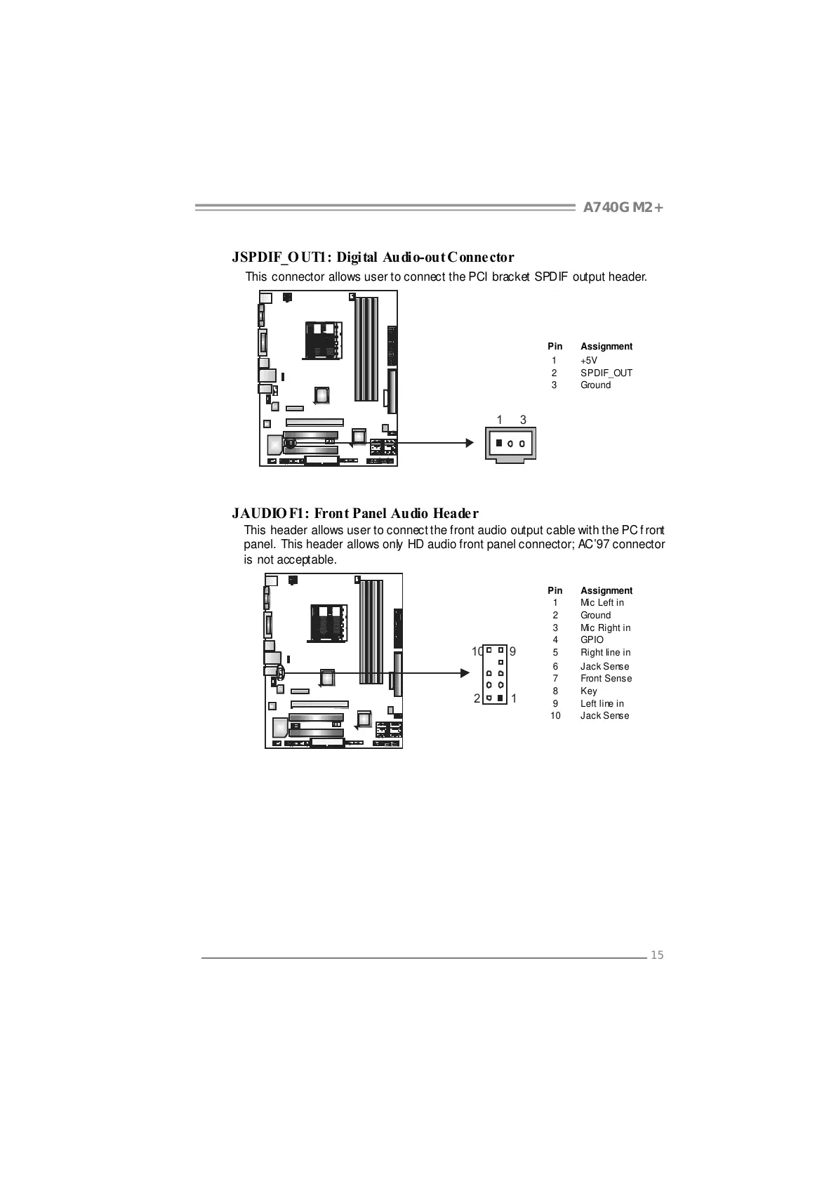 panel. This header allows only HD audio front panel connector; AC’97 connector