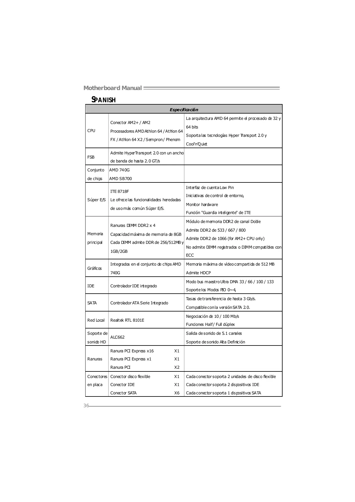 Conector SATA X6 Cada conector soporta 1 dispositivos SATA