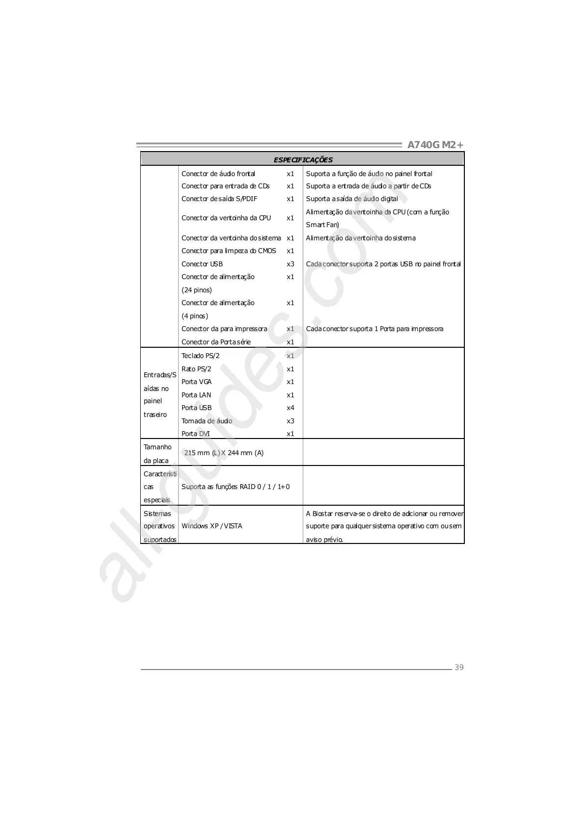 A Biostar reserva-se o direito de adicionar ou remover