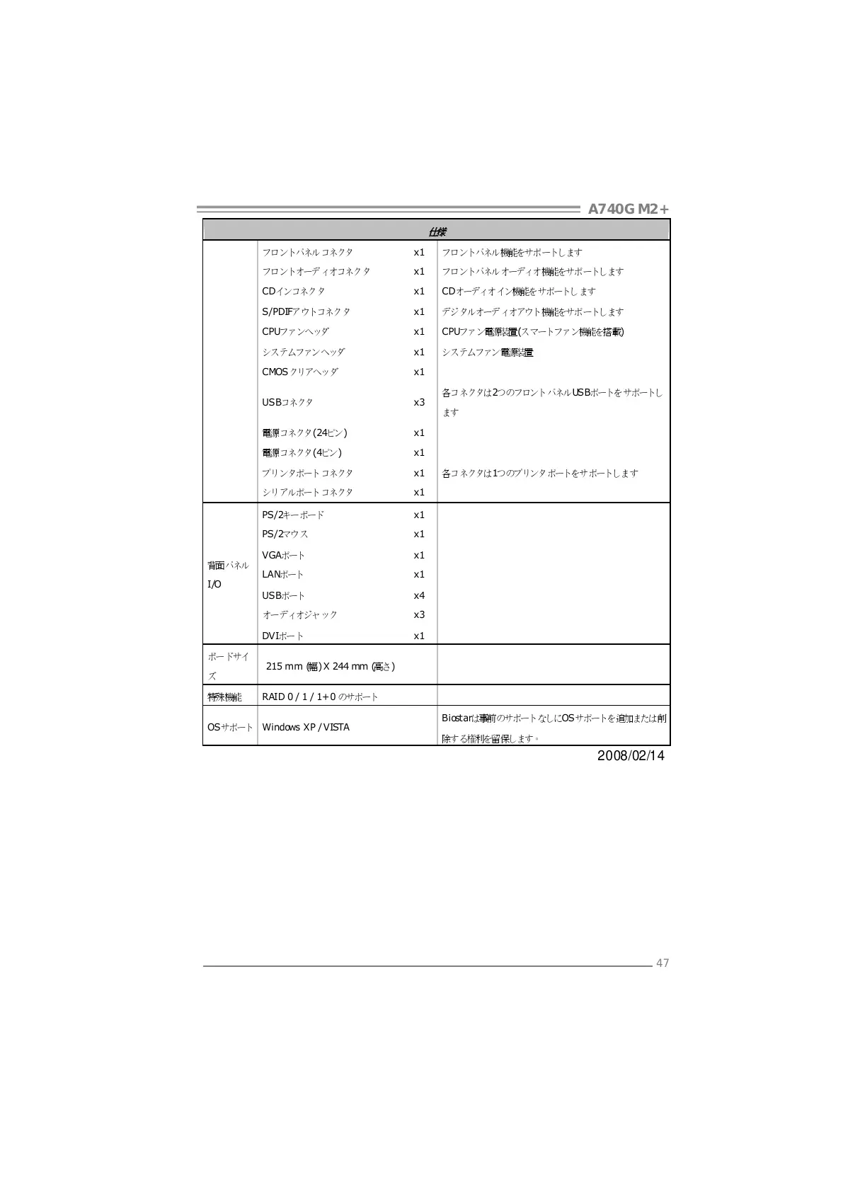 フロントオーディオコネクタ x1 フロントパネルオーディオ機能をサポートします